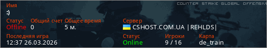 Играет на Counter Strike Global Offensive сервере. Страна: УкраинаПервый раз замечен 12:33 26.03.2026
