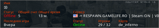 Последний раз был в сети Вчера Игрок с таким ником замечен на 16 серверах