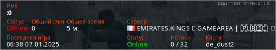 Играет на Counter Strike 1.6 сервере. Страна: ФранцияПервый раз замечен 06:28 07.01.2025