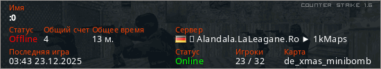 Играет на Counter Strike 1.6 сервере. Страна: ГерманияПервый раз замечен 06:26 18.12.2025