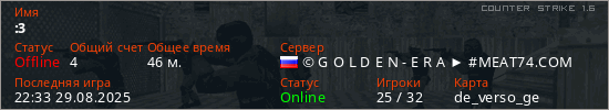 Играет на Counter Strike 1.6 сервере. Страна: РоссияПервый раз замечен 07:54 17.07.2023