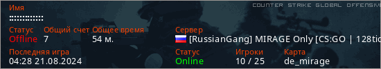 Играет на Counter Strike Global Offensive сервере. Страна: РоссияПервый раз замечен 06:10 15.08.2024