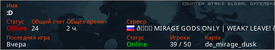 Играет на Counter Strike Global Offensive сервере. Страна: РоссияПервый раз замечен 21:57 11.03.2024