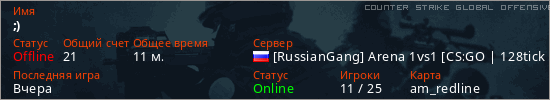 Играет на Counter Strike Global Offensive сервере. Страна: РоссияПервый раз замечен 19:58 14.01.2024