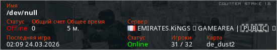 Играет на Counter Strike 1.6 сервере. Страна: ФранцияПервый раз замечен 01:32 24.03.2026