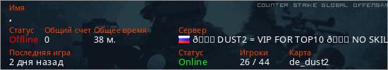 Играет на Counter Strike Global Offensive сервере. Страна: РоссияПервый раз замечен 16:45 03.05.2025