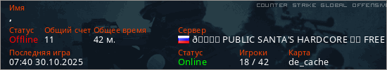 Последний раз был в сети 07:40 30.10.2025 Игрок с таким ником замечен на 48 серверах