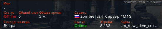 Играет на Counter Strike Source сервере. Страна: РоссияПервый раз замечен 10:14 06.03.2026
