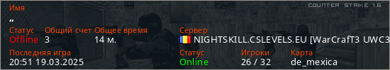 Последний раз был в сети 20:51 19.03.2025 Игрок с таким ником замечен на 15 серверах