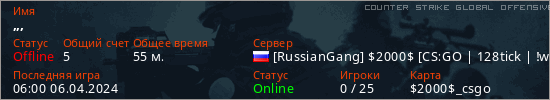 Играет на Counter Strike Global Offensive сервере. Страна: РоссияПервый раз замечен 03:48 03.04.2024