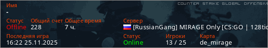 Играет на Counter Strike Global Offensive сервере. Страна: РоссияПервый раз замечен 12:55 14.02.2024
