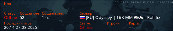 Играет на Counter Strike Global Offensive сервере. Страна: РоссияПервый раз замечен 11:36 05.04.2025