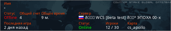 Играет на Counter Strike Global Offensive сервере. Страна: РоссияПервый раз замечен 18:39 17.02.2026