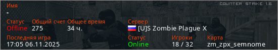 Последний раз был в сети 17:05 06.11.2025 Игрок с таким ником замечен на 56 серверах