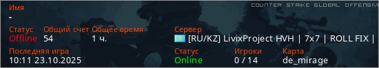 Играет на Counter Strike Global Offensive сервере. Страна: КазахстанПервый раз замечен 21:13 27.02.2025