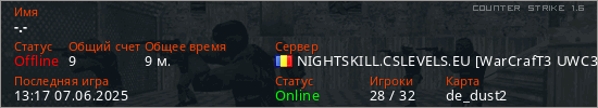 Играет на Counter Strike 1.6 сервере. Страна: РумынияПервый раз замечен 09:33 06.06.2025
