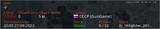 Играет на Counter Strike 1.6 сервере. Страна: РоссияПервый раз замечен 21:54 27.09.2023