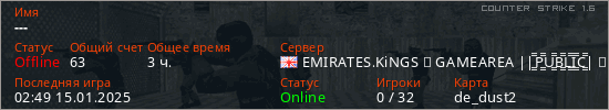 Последний раз был в сети 02:49 15.01.2025 Игрок с таким ником замечен на 40 серверах