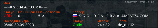 Играет на Counter Strike 1.6 сервере. Страна: РоссияПервый раз замечен 08:28 30.09.2023