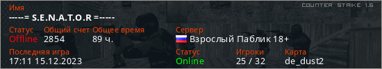 Играет на Counter Strike 1.6 сервере. Страна: РоссияПервый раз замечен 14:16 11.12.2022