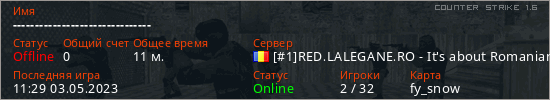 Играет на Counter Strike 1.6 сервере. Страна: РумынияПервый раз замечен 11:13 22.03.2023