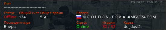 Последний раз был в сети Вчера Игрок с таким ником замечен на 28 серверах