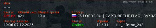 Играет на Counter Strike 1.6 сервере. Страна: РоссияПервый раз замечен 18:45 25.07.2021