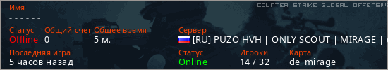 Играет на Counter Strike Global Offensive сервере. Страна: РоссияПервый раз замечен 11:22 16.03.2026