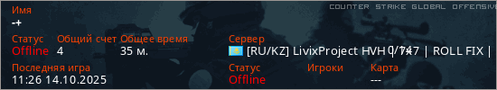 Играет на Counter Strike Global Offensive сервере. Страна: КазахстанПервый раз замечен 18:52 11.10.2025