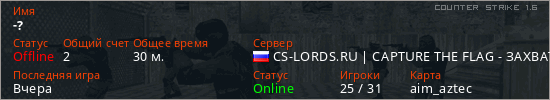 Играет на Counter Strike 1.6 сервере. Страна: РоссияПервый раз замечен 22:12 05.12.2025