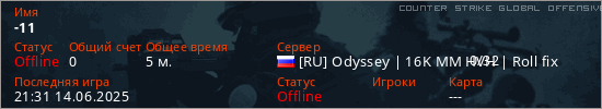 Играет на Counter Strike Global Offensive сервере. Страна: РоссияПервый раз замечен 20:53 14.06.2025