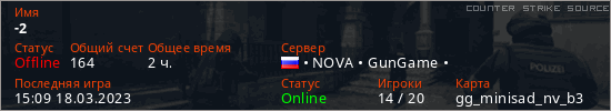 Играет на Counter Strike Source сервере. Страна: РоссияПервый раз замечен 23:30 17.02.2023