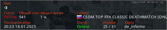 Играет на Counter Strike 1.6 сервере. Страна: РоссияПервый раз замечен 16:16 09.12.2020