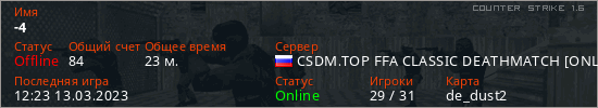 Играет на Counter Strike 1.6 сервере. Страна: РоссияПервый раз замечен 17:00 08.07.2022