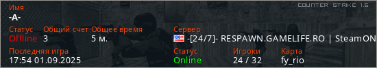 Играет на Counter Strike 1.6 сервере. Страна: СШАПервый раз замечен 17:45 01.09.2025