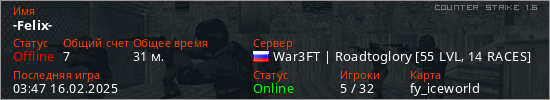 Последний раз был в сети 03:47 16.02.2025 Игрок с таким ником замечен на 3 серверах