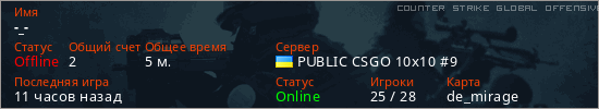 Играет на Counter Strike Global Offensive сервере. Страна: УкраинаПервый раз замечен 03:15 07.03.2026