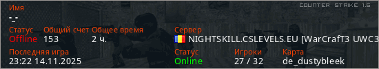 Последний раз был в сети 23:22 14.11.2025 Игрок с таким ником замечен на 60 серверах