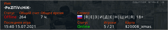 Последний раз был в сети 15:40 15.07.2021 Игрок с таким ником замечен на 13 серверах