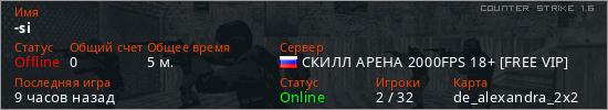 Последний раз был в сети 8 часов назад Игрок с таким ником замечен на 6 серверах