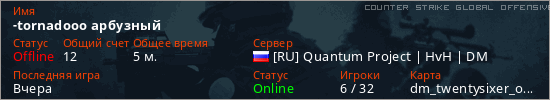 Играет на Counter Strike Global Offensive сервере. Страна: РоссияПервый раз замечен 21:53 22.03.2026