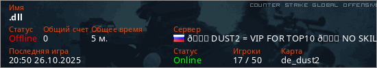 Играет на Counter Strike Global Offensive сервере. Страна: РоссияПервый раз замечен 20:46 26.10.2025