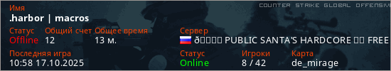 Играет на Counter Strike Global Offensive сервере. Страна: РоссияПервый раз замечен 14:56 16.10.2025