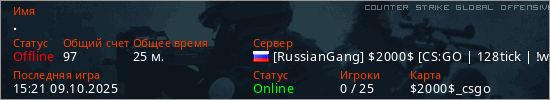 Играет на Counter Strike Global Offensive сервере. Страна: РоссияПервый раз замечен 22:25 22.09.2023