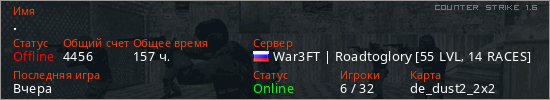 Последний раз был в сети Вчера Игрок с таким ником замечен на 58 серверах