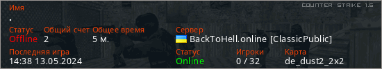 Играет на Counter Strike 1.6 сервере. Страна: УкраинаПервый раз замечен 14:36 13.05.2024