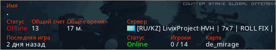 Играет на Counter Strike Global Offensive сервере. Страна: КазахстанПервый раз замечен 13:33 24.02.2025