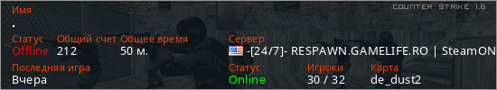 Играет на Counter Strike 1.6 сервере. Страна: СШАПервый раз замечен 18:28 24.04.2025