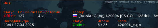 Играет на Counter Strike Global Offensive сервере. Страна: РоссияПервый раз замечен 21:16 30.01.2024