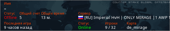 Играет на Counter Strike Global Offensive сервере. Страна: РоссияПервый раз замечен 20:41 17.09.2025